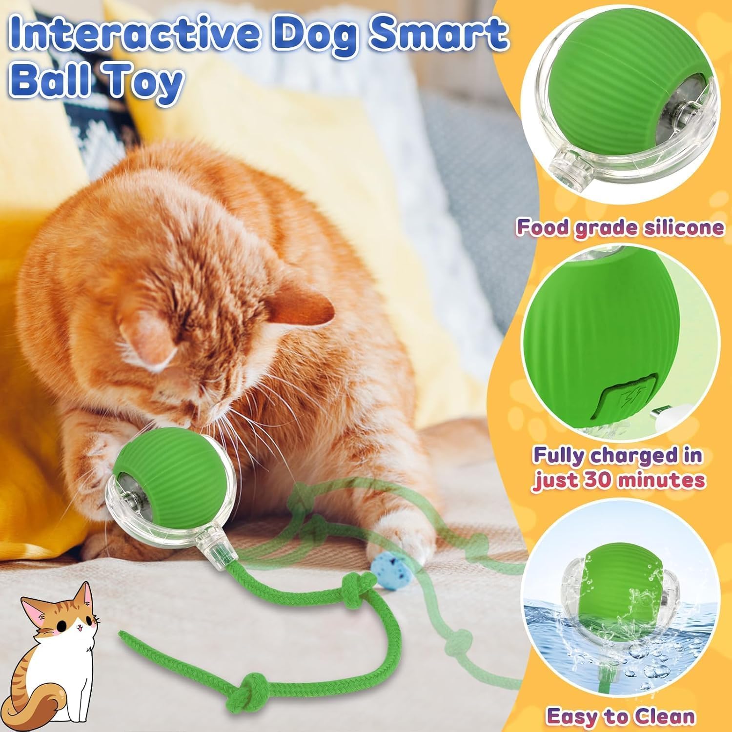 Active Rolling Ball with Tail for Cats/Dogs, Rechargeable Electric Interactive Ball Toy